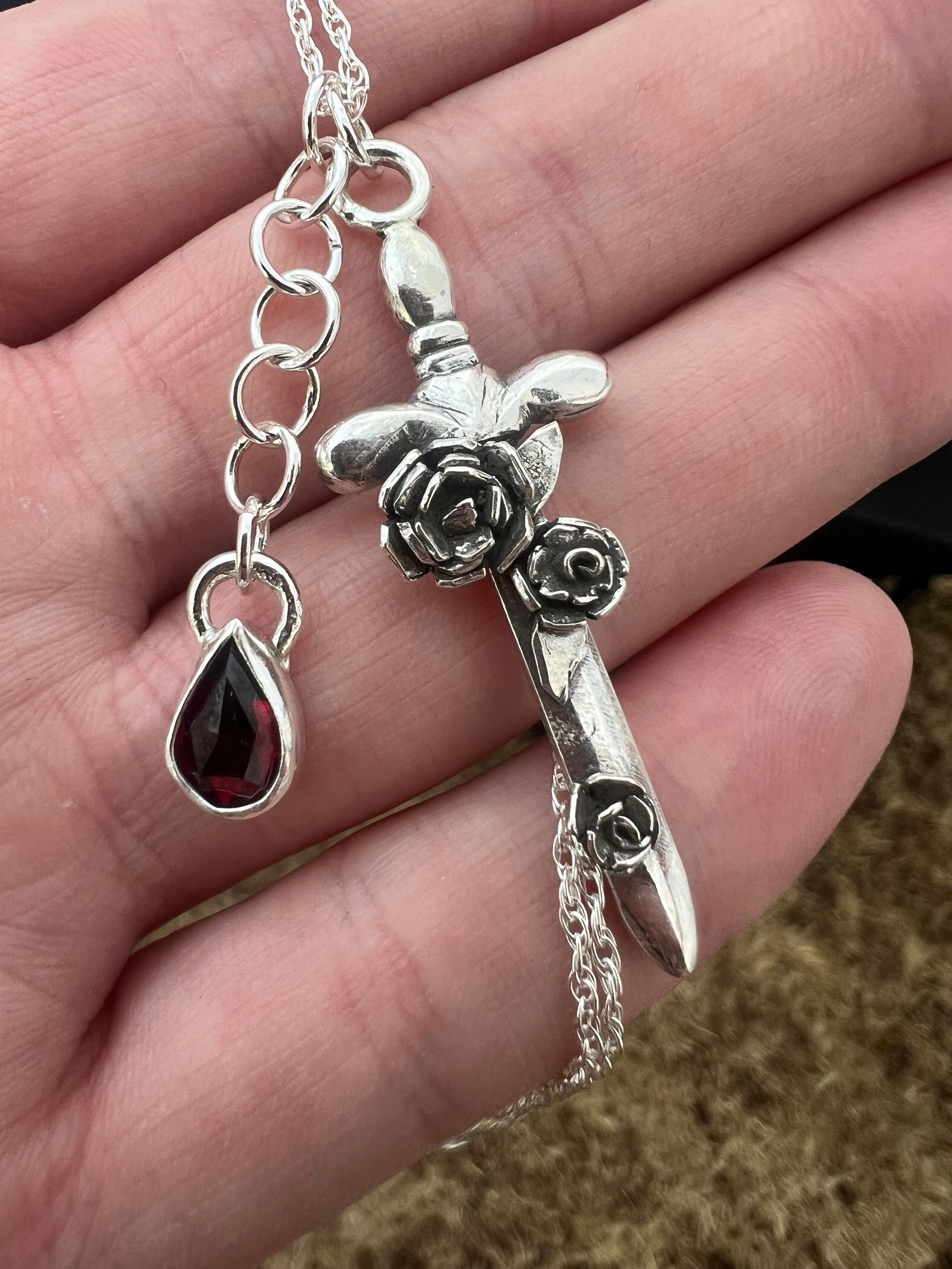 floral sword with removable pear garnet necklace